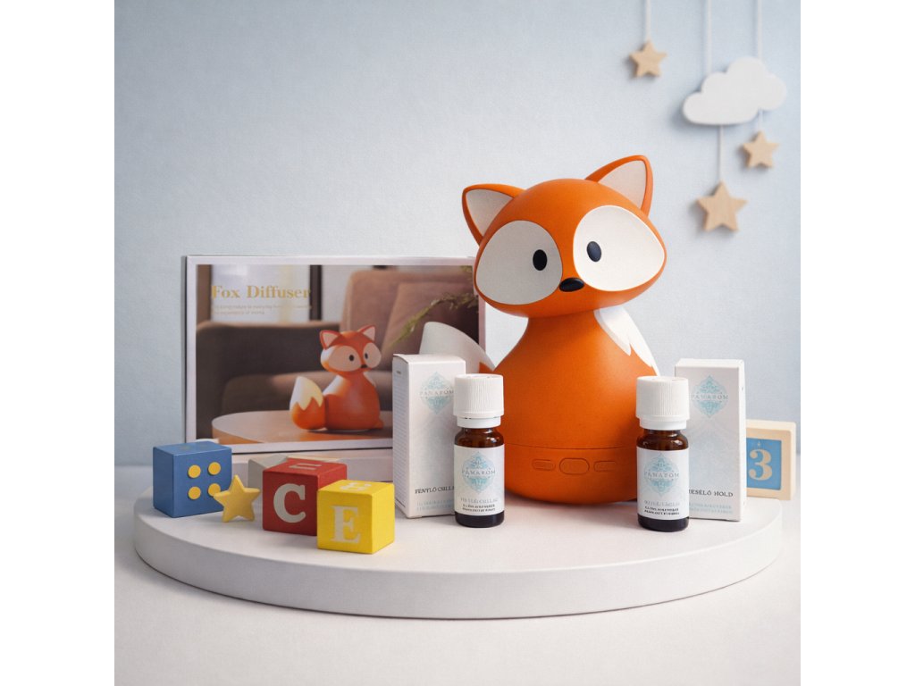 Tudjuk, hogy szülőként a nehezebb napokon minden segítség jól jön. Ezt a csomagot úgy állítottuk össze, hogy minden helyzetben legyen mihez nyúlnod: legyen szó az esti elcsendesedésről vagy a téli, orrdugulós időszakról, amikor nehezebb a légzés. A legnépszerűbb Róka diffúzorunk mellé két olyan illóolajat választottunk, amik természetes segítséget nyújtanak a gyerekszobában.